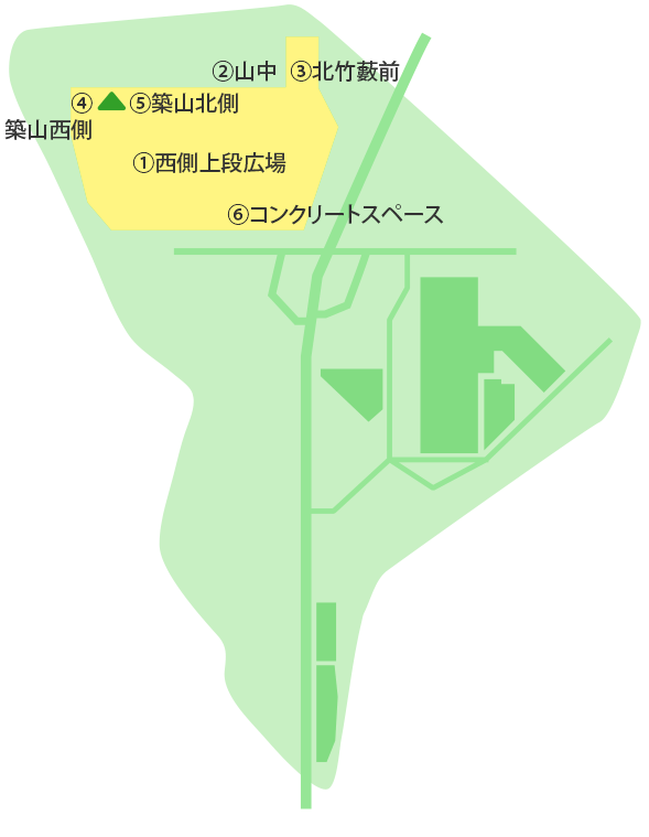 緑山スタジオの敷地内には約20,000坪(東京ドーム1個分相当)にもなる緑に囲まれた広大なスペースがあり、「①西側西側上段広場」でSASUKEのセットが組まれ撮影されています。